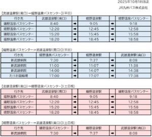 お問い合わせ先:JR九州バス(株) 0954-43-0079(9:00~18:00)